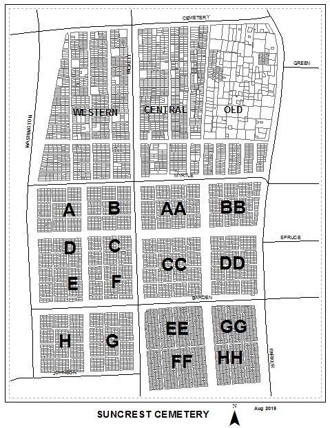 Both cemeteries were originally church cemeteries before becoming City-owned and maintained. In the Suncrest Cemetery, sections known as Old, Western, and Central date back to the early and mid-1800s. Sections A and Bin Hillcrest date to the 1940s.