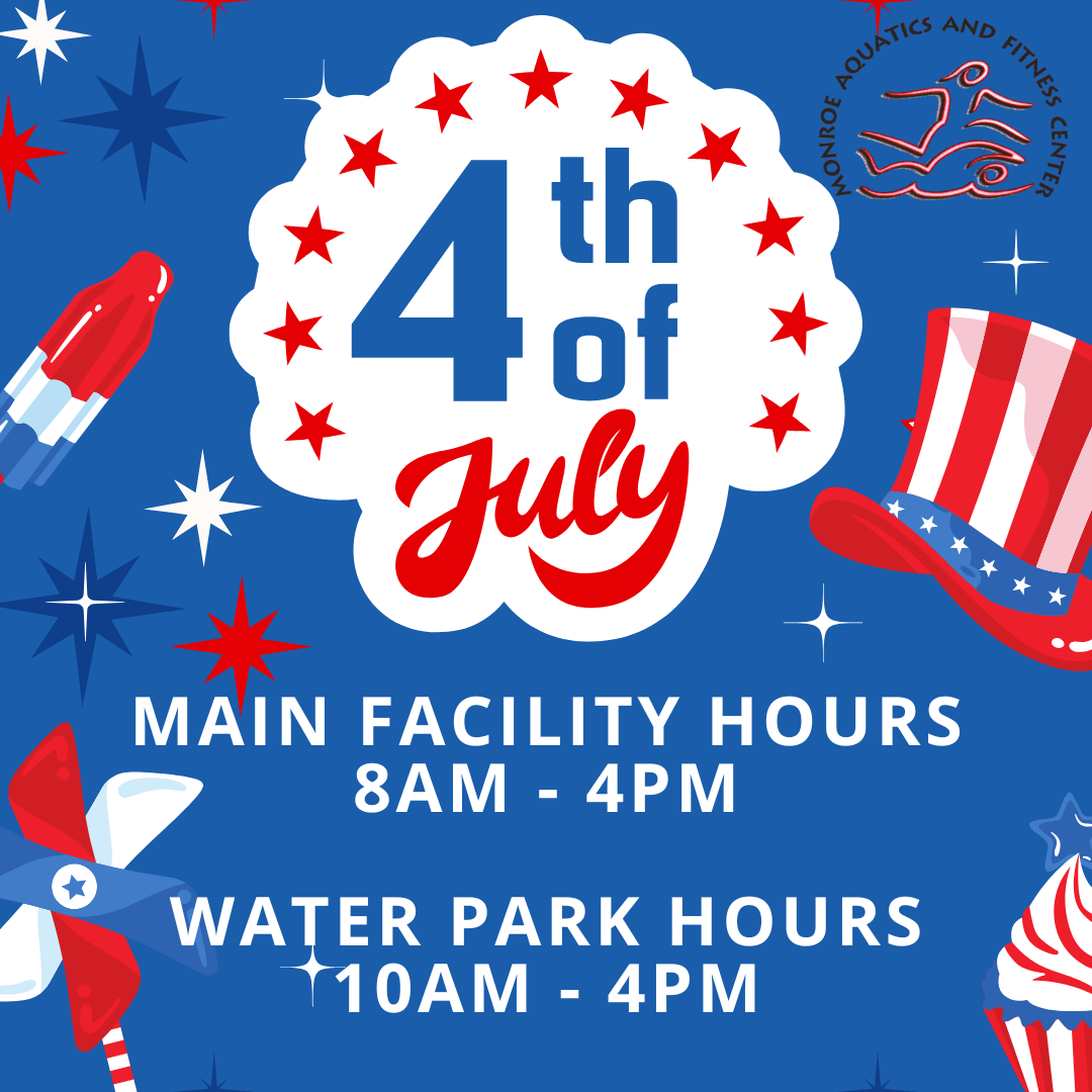 Monroe Aquatics and Fitness Center will operate on adjusted hours for the Independence Day holiday.